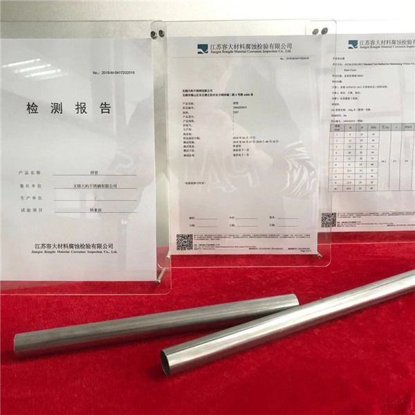 主要工艺要求:张浦、太钢、宝新等2B原卷,焊管母材及焊缝整体固溶处理,严格控制外径公差及内焊缝余高,检测内焊缝无缺陷,逐支压力检测15公斤保压15秒,整支12米管内、外抛光,18米管压力检验。